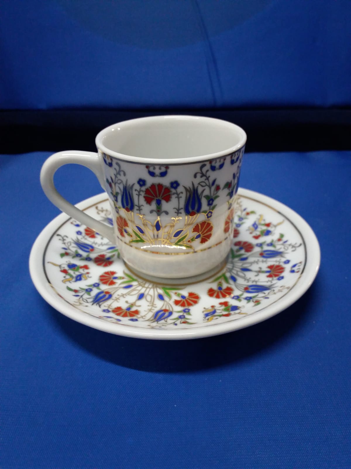 El dekoru, kadife kutulu, 2’li-6’lı ve tepsili yaldızlı fincan takımı